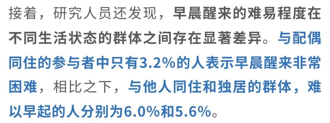 这种差异表明,夫妻之间可能由于作息时间的相似性,早晨起床时的适应性更强,从而减轻了早晨醒来的困倦感。