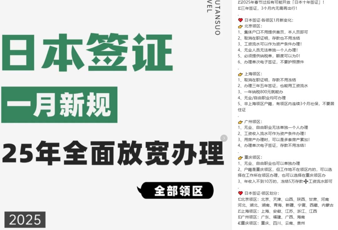 去年年底,日本放宽了中国人赴日旅游签证的发放条件,具体包括新设立有效期10年的旅游签证,并将团队旅行签证的可停留天数从15天延长至30天,以促进中日两国的经济与人文交流。