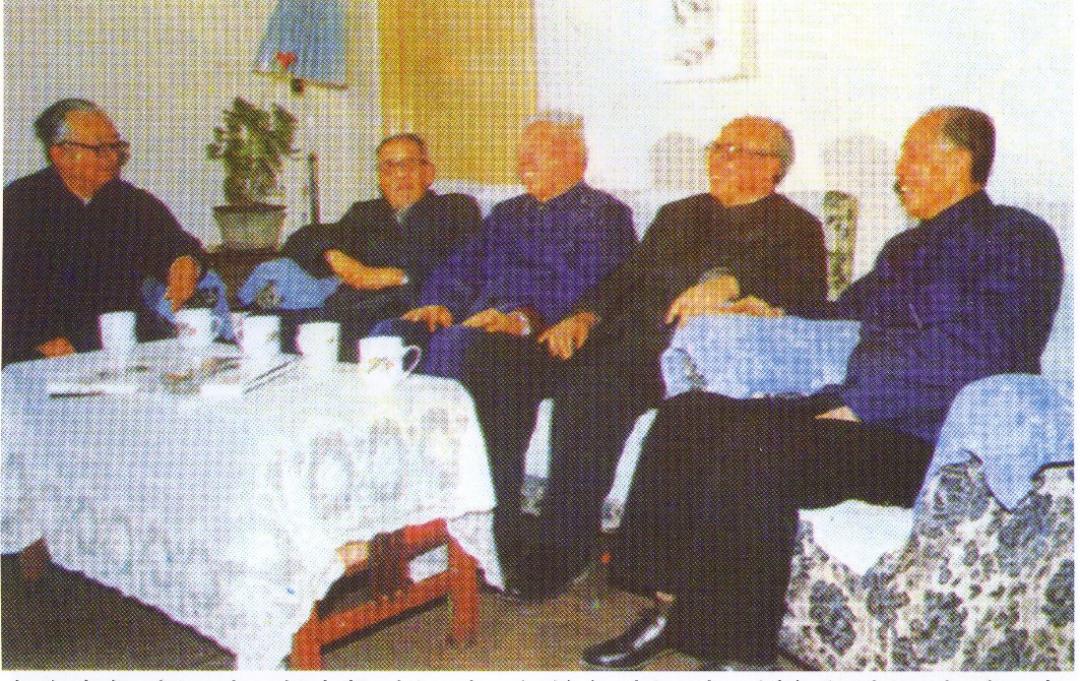 与白寿彝(左一)、赵光贤(左二)、何兹全(左三)、刘家和(左四)合影此期我常去龚先生家,有时是专门请教,更多的时候并无目的,随意坐坐而已。他有一间约十平方米的书房,三四个书橱。能有专门的书房这在当时多数教师中,都是可望而不可即的事情,自然更令我们青年教师羡慕不已。