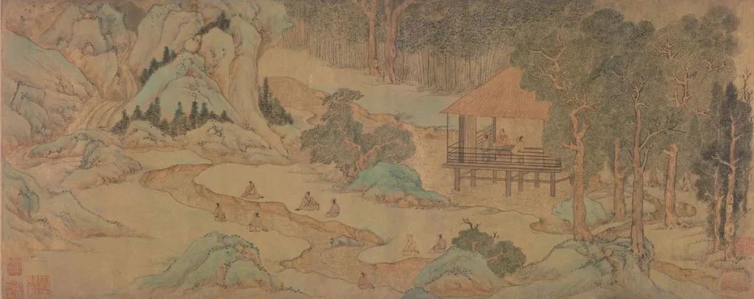 ▲ 文徵明《兰亭修禊图》卷在诸多名臣中,王羲之、谢安偏生是“异类”。作为南渡二代,他们不再衣衫不整,装疯卖傻,转而追求更雅致的生活风尚,崇尚更务实的保家卫国理想。王羲之以自然率真的风骨著称,他屡次拒绝王导的举荐,而是追慕志气相投之人。一方面,他为人清雅,常与友人登楼吟咏。另一方面,他恪守君子之道,为官务实,体恤百姓。他的赤子之心、儒家风范,深深影响了后辈谢安。同样才华出众的谢安,四岁便“风神秀彻、神识沈敏、风宇条畅”,长大后名满天下。在那文气荟萃的时代,二人注定产生交集,并萌生心心相惜的默契。早在幼年时期,七岁的谢安就曾询问二十四岁的王羲之,中原士族和众多百姓为什么要南渡江东。王羲之用“衣冠南渡”回应——“衣冠”便是中原华夏民族的象征,即便逃难,仍要穿戴整齐,讲究风度。对于士人来说,士可杀不可辱,衣冠楚楚乃真君子也。由此,衣冠精神一直深埋于谢安心中,成为他一生秉承的信仰。此后多年,他们纵情诗酒,寄托怀抱,以文艺审美观照现实,更展现了传统文人豁达的胸襟怀抱。