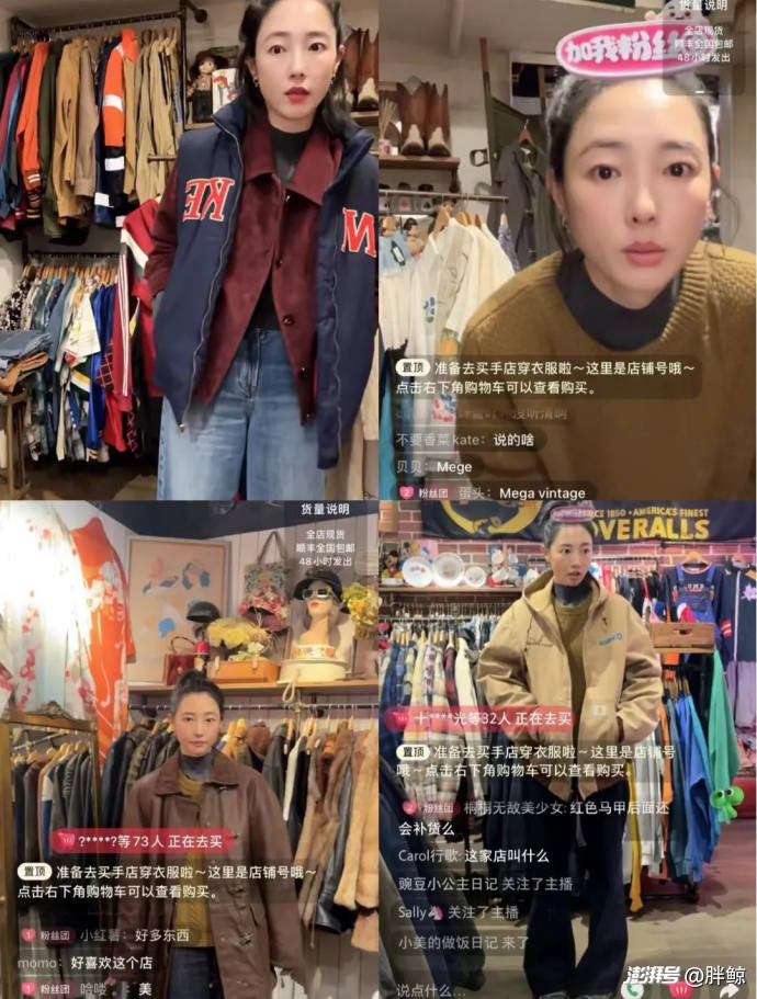 不同于其他的买手直播间,白百何的直播间也与她个人风格一致,比较随性,这次的直播不像是带货,更像是聊天。场景设置在一家经常逛的 Vintage 古着店内,而不是专门的演播厅,更多像是在逛街聊天,连镜头都是手持而非固定的,将“松弛感”拉满。但这种稍显“粗糙”的直播方式,与客单价较高的时尚潮品形成了“预期错配”,没有满足观众期待的视听体验。