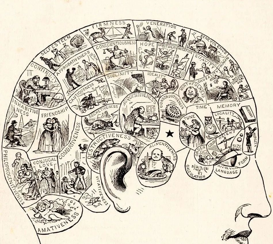 他们认为颅骨的形状是思想的地图,心理功能与大脑的特定区域相对应,所以观察颅骨,就可以判断一个人的品性。