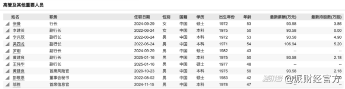 值得一提的是,长沙银行的行长和副行长都较为年轻,其中,副行长罗刚最为年轻,为1982年生人,年仅43岁,剩余高管也都是“70后”,且有两位女性高管。