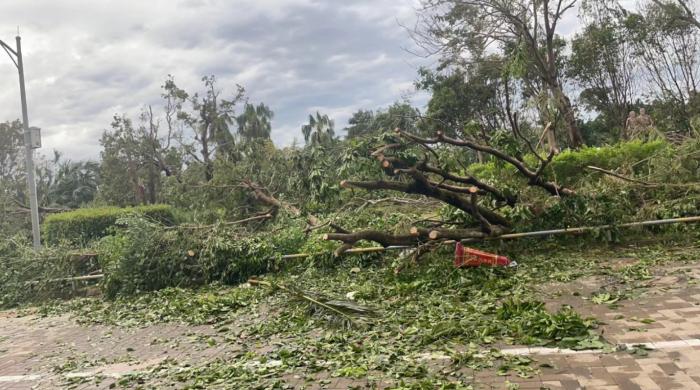 供电通信系统被风雨刮坏,家中玻璃窗被吹碎,路上一片狼藉、满目疮痍,大树被拦腰折断,被风吹出来的垃圾、杂物随处可见。整座城市陷入一片黑暗。
