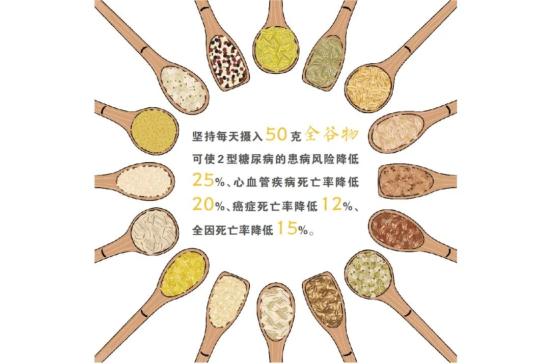 “除此之外,全谷物还有助于降低慢性病患病风险。”谭斌说,研究表明,坚持每天摄入50克全谷物,可使2型糖尿病的患病风险降低25%、心血管疾病死亡率降低20%、癌症死亡率降低12%、全因死亡率降低15%。一项来自195个国家、长达27年的国际疾病负担跟踪调查结果表明,全谷物摄入量不足是慢性代谢性疾病导致死亡的第二大膳食风险因素。
