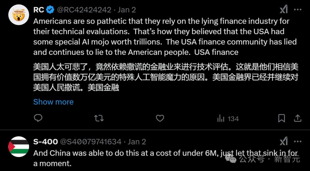 不到600万美元的成本,就能训出一个如此强的模型,这简直是彻底扯掉了美国金融业的遮羞布。