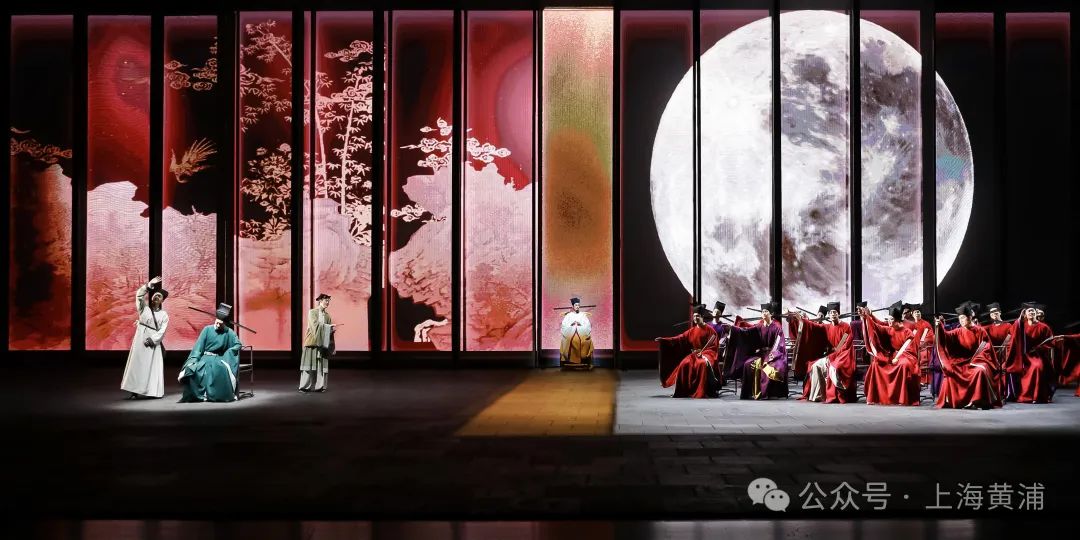舞台上,依照宋朝规制打造30米青砖铺满的地面,40多把北宋气质的座椅,17组9米高2米宽、可向前推进的多媒体大屏风,构成大而宽的舞台视觉主体元素,流动的宋代市井之景就在其间徐徐展开。歌队也发挥了重要作用,他们是北宋官僚、黎民百姓、家人等,时而站在当代文化立场,发出今人的调侃、戏谑、评判,增加了画面感和喜剧性,巧妙地人景相融,让舞台充满丰富变化。服饰道具方面使用了玉、珍珠、木头等材质精心打造的头饰发簪,使宋代服饰的文雅与现代的活泼灵动结合,更增添了浓郁的文化仪式感,让传统文化在现代舞台上焕发出崭新活力。