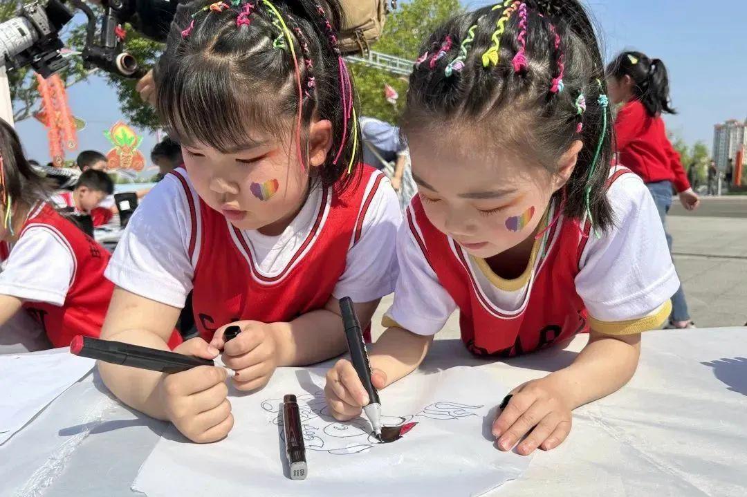 非遗传承人指导孩子绘制手工风筝