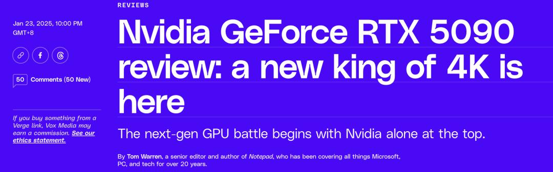 这是 The Verge 在测试了 RTX 5090 得出的结论: