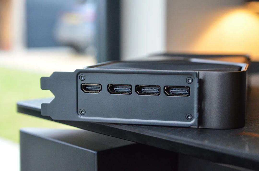 英伟达在背板配置了三个 DisplayPort 2.1b 接口和一个 HDMI 2.1b 接口。