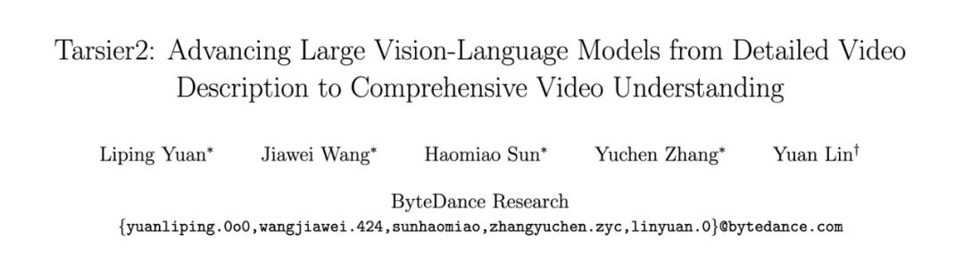 “火眼金睛” 是怎么炼成的?Tarsier2 是一个 7B 大小的轻量级模型,支持动态分辨率,能够看得懂长达几十分钟的视频,尤其擅长对几十秒的短视频片段进行分析。研究团队公开了详尽的技术报告,相关数据、代码和模型也在持续开源中: