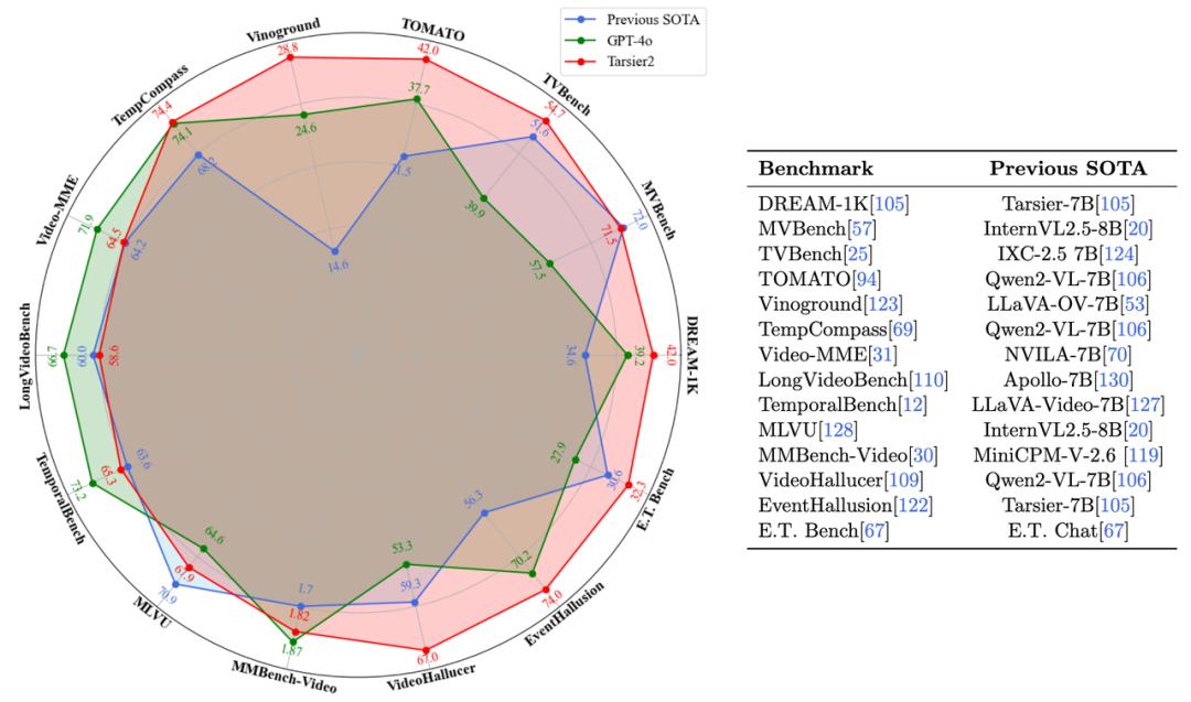 Tarsier 在生成详细且准确的视频描述方面超越了现有的闭源和开源工作,更是在广泛的视频理解任务中树立了新的标杆。文本、语音、图片、视频多模态深度融合是当下人工智能发展的核心趋势与关键方向,Tarsier2 在这条道路上已经迈出了坚实的步伐。期待未来 Tarsier2 能在多模态融合的浪潮中持续领航,为人工智能的发展带来更多惊喜与突破 。
