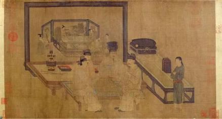 (南唐)周文矩《重屏会棋图》,绢本设色,40.3cmx70.5cm,北京故宫博物院藏(宋摹本)士人的屏赞