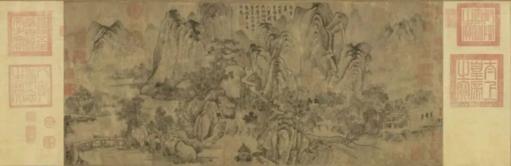 自中晚唐以来文人对于山水画表达的自由世界,一点点感染着整个社会的意识。终于,在北宋仁宗朝的学士院玉堂,作为隐逸意象的山水屏风进入了大内的空间。宋代沿袭唐制设翰林学士院,其地点设在宫城的西南一隅。学士院的学士实际上充当了皇帝的顾问,这一机构不但影响到皇帝的决策,还是除皇帝外政权的最高执掌者宰相的直接来源,因此可以说,这是一个非常严肃的行政机构。但是,由于对士大夫的开明政策,在宋朝建立之初的太宗时期,学士院的两壁就被允许分别画上了僧人画家巨然的山水,以及画院艺学董羽的龙水图。南宋蔡启的《蔡宽夫诗话》后来在“宋宣献公为学士时,燕穆之复为六幅山水屏寄之,遂置于中间。宣献诗所谓‘忆昔唐家扃禁地,粉壁曲龙闻曩记。承明意象今顿还,永与銮坡为故事’是也。”宋宣献公即宋绶,其在仁宗天圣年间为翰林学士,而这幅画的作者燕肃,字穆之,他的身份却并不是翰林待诏或是艺学,而是一位参与政事的重要官员,官至龙图阁直学士、礼部侍郎。燕肃在绘事上极为谨慎,王安石曾题其山水图有“燕公侍书燕王府,王求一笔终不与”,他画这六幅山水屏风并非是为了遵王命,而是他赠送给好友宋绶的礼物,而身份翰林学士的宋绶在皇帝的授意下也就将这六幅山水装裱在了学士院玉堂中央的屏风上。事实上当时在大内,因为前史对天子的训诫而罕见山水画,再考虑到南宋时仁宗的好山水又被王应麟批评,这不能说不是北宋帝王对士大夫的一种特别的宽和。