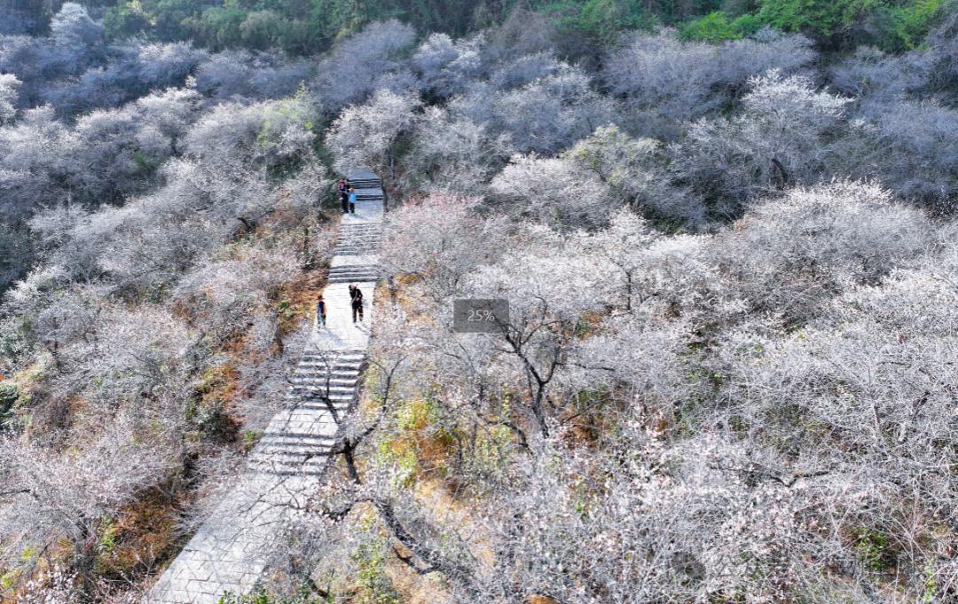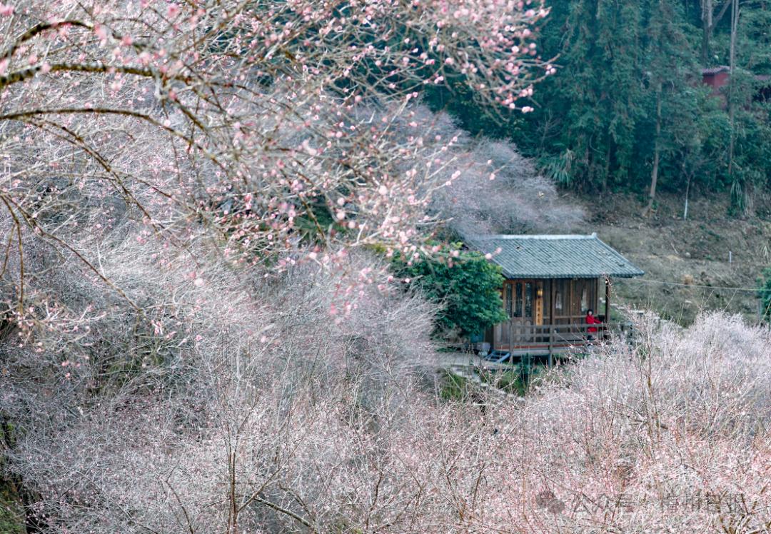 梅城郊区的高涧观音宫后山梅花林如诗画般铺展开来