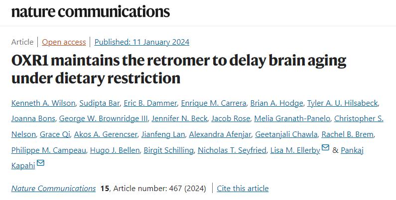 ①Wilson, K.A., Bar, S., Dammer, E.B. et al. OXR1 maintains the retromer to delay brain aging under dietary restriction. Nat Commun 15, 467 (2024).
