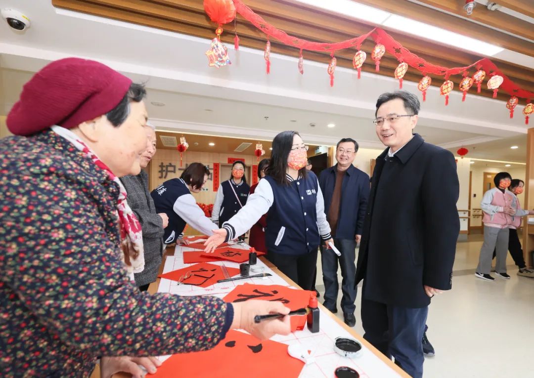 “有多少老人留院过年?”“年夜饭准备了什么饭菜?”在松江区社会福利院,王华杰听取福利院总体情况介绍,并与老人们亲切交谈,关心他们的生活起居和身体健康,为他们送上节日祝福。王华杰要求福利院工作人员要用心用情做好服务保障工作,确保老人在福利院吃得舒心、住得安心、过得开心,真正实现老有所养、老有所乐、老有所安。
