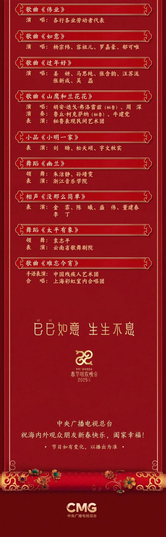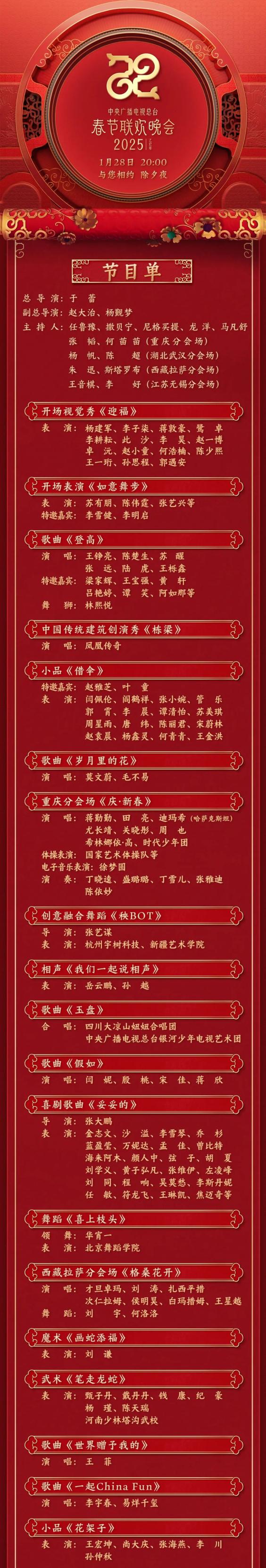 来源|央视新闻原标题:《官宣!2025年央视春晚节目单发布!》