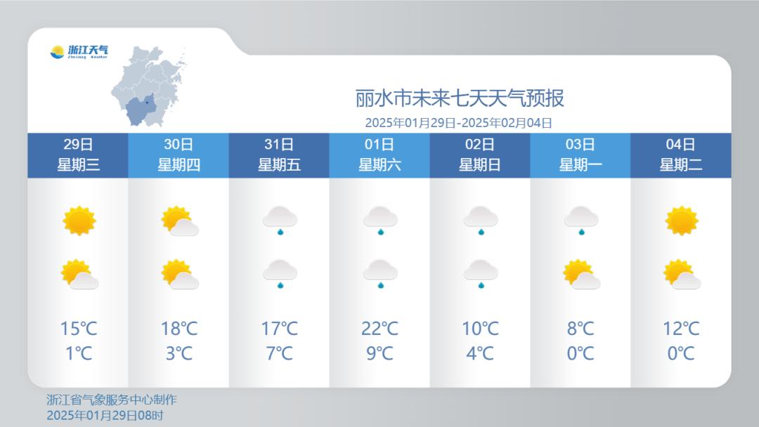 白天气温逐步回升,预计最高气温全省大部升至10℃以上,浙北地区9-11℃,其它地区12-14℃。大年初一天气依旧晴冷,大家走亲访友还是要做好防寒保暖措施。