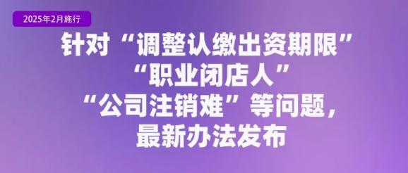 为实施新修订公司法及配套行政法规,规范公司登记管理,维护交易安全,优化营商环境,针对舆论广泛关注的“调整认缴出资期限”“职业闭店人”“公司注销难”及虚假登记等问题,市场监管总局近日制定出台《公司登记管理实施办法》,于2025年2月10日起正式施行。《实施办法》细化中介机构代理他人、以自己名义或者冒用他人名义从事虚假登记行为的法律责任。详细阅读>>
