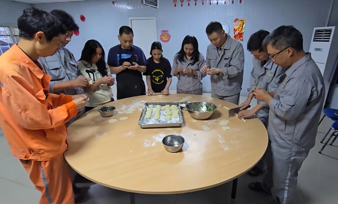 天辰公司印尼金祥焦炭项目部邀请印尼籍员工共聚一堂包饺子、话风俗,欢度佳节,让海外一线飘荡着浓浓的年味,在异国他乡点亮“中国红”,品尝“中国味”,把中籍员工和印尼籍员工的心紧紧联系在一起,共享欢乐喜庆的节日氛围,感受绚烂多彩的中华文化。赛鼎公司