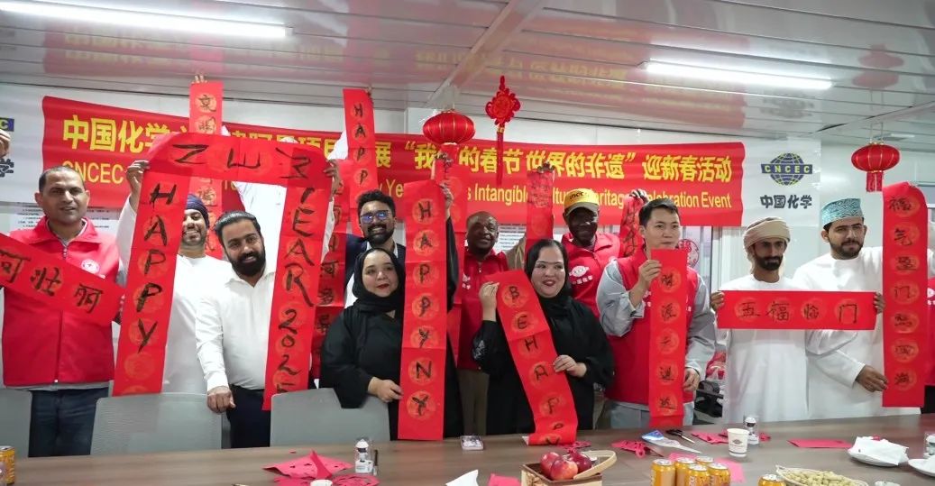六化建阿曼项目部组织当地阿曼职工及其他外籍职工共同开展了“我们的春节 世界的非遗”迎新春文化交流活动。活动中,大家一起包饺子、剪纸、写对联,在欢快的氛围中了解中国春节的传统习俗,品味中国“年味”。大家对中国春节兴趣浓浓,对非遗手工兴趣满满。最后大家共同送上“蛇年大吉 新年快乐”的美好祝福,和谐相处、美美与共的文化氛围更加浓烈。七化建