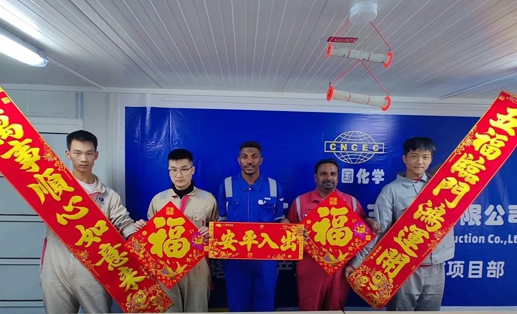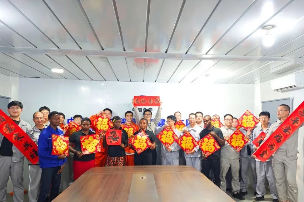 东华公司南非分公司员工通过张贴对联、悬挂中国结、精心准备丰盛的美食,积极营造喜庆祥和的新年氛围。业主团队与属地员工首次接触“中国新年”,对“蛇年”象征的智慧、灵巧与财富,表现出浓厚的兴趣和积极的探索精神。活动最后,大家通过视频给远方的中国兄弟姐妹献上了新年祝福。五环公司