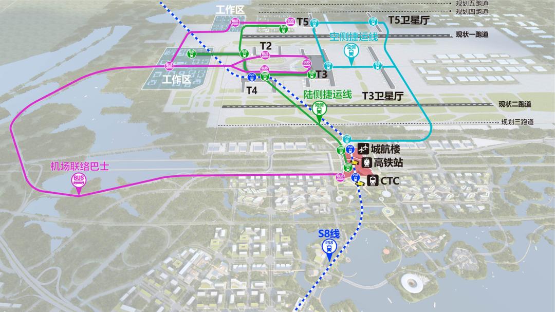 以往,从高铁站到地铁站可能需要花费20至30分钟;如今,通过一体化区域设计,旅客在5至10分钟内即可完成换乘,甚至可以直接与机场便捷换乘,大大提高了交通模式之间的转换效率。