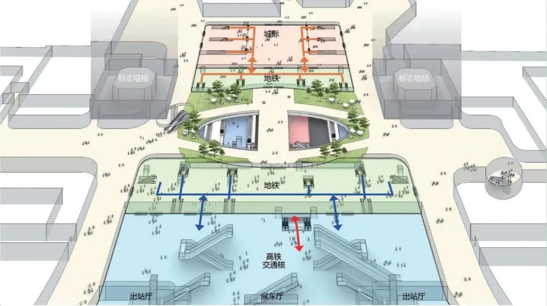 高度集成的枢纽设计,让旅客在不同交通方式间转换的步行距离极大缩短。