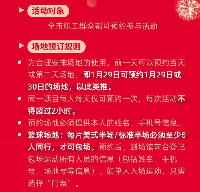 合肥市总工会推出“春节七天体育场馆免费开放”福利,1月29日(正月初一)-2月4日(正月初七),合肥职工体育活动中心内羽毛球、篮球场地向广大职工群众免费开放。“我们拿出了20片羽毛球场地,8片美式半场和2片标准半场的篮球场地,免费开放。”场地相关负责人介绍,“预约情况非常火爆,每天来打羽毛球的有800人左右,打篮球的1000人左右。”