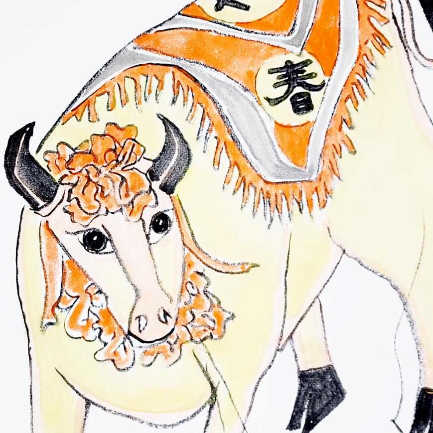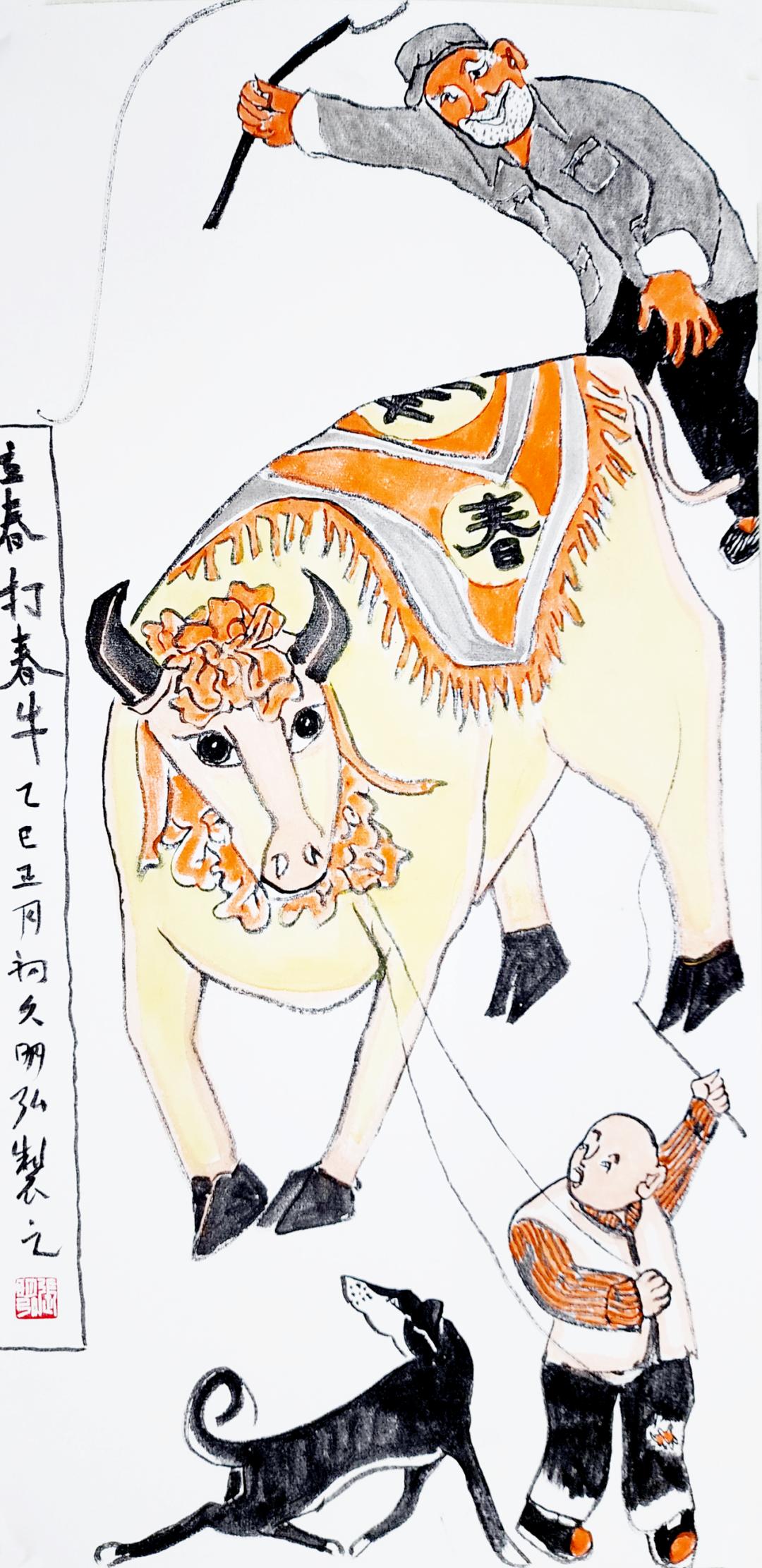 《立春·打春牛》张明弘绘于寻根长城工作室