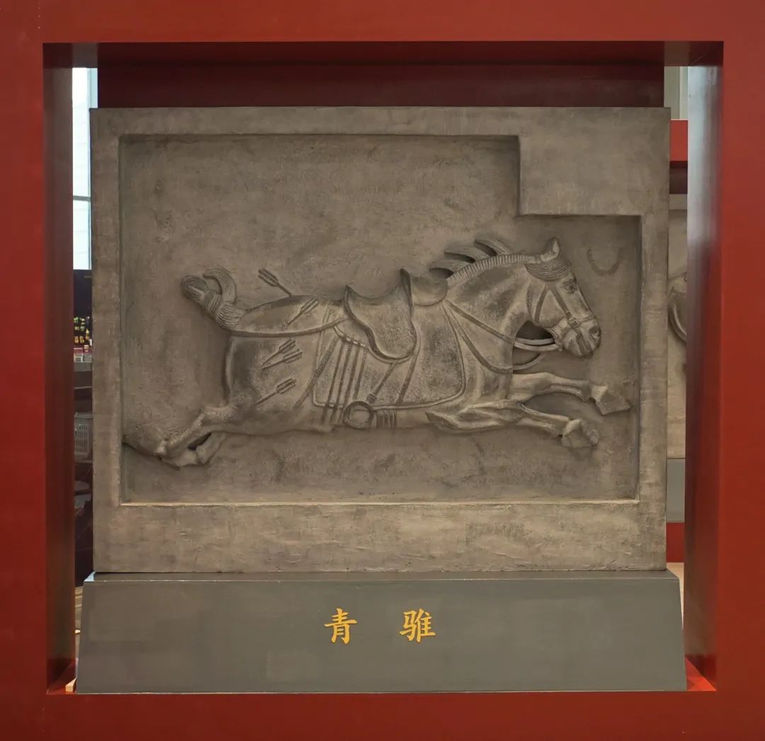 青骓原型战马毛色苍白。武德四年(621),唐太宗与窦建德在虎牢关外激战时骑乘。战斗中,马身中五箭,均系冲锋时被迎面射中,但多射在马身后部,足可说明骏马飞奔的速度。石刻青骓身中五箭,四蹄腾空,呈飞奔之势。唐太宗为它题的赞语是:“足轻电影,神发天机。策兹飞练,定我戎衣。”