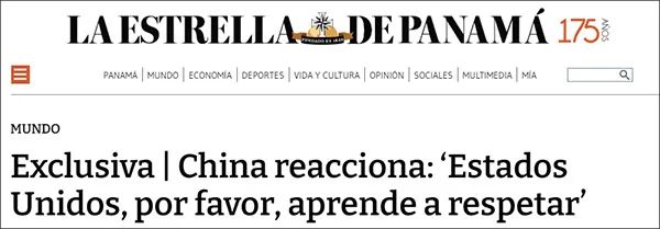 在文章最后,徐学渊表示,在国际社会上,各国都是平等的,都有自主发展外交关系的权利。任何人都无权对其它国家发号施令或规定指导方针。如果美国想为美洲创造一个“黄金时代”,就必须先尊重其它国家,并问问拉美人民想要一个什么样的时代。