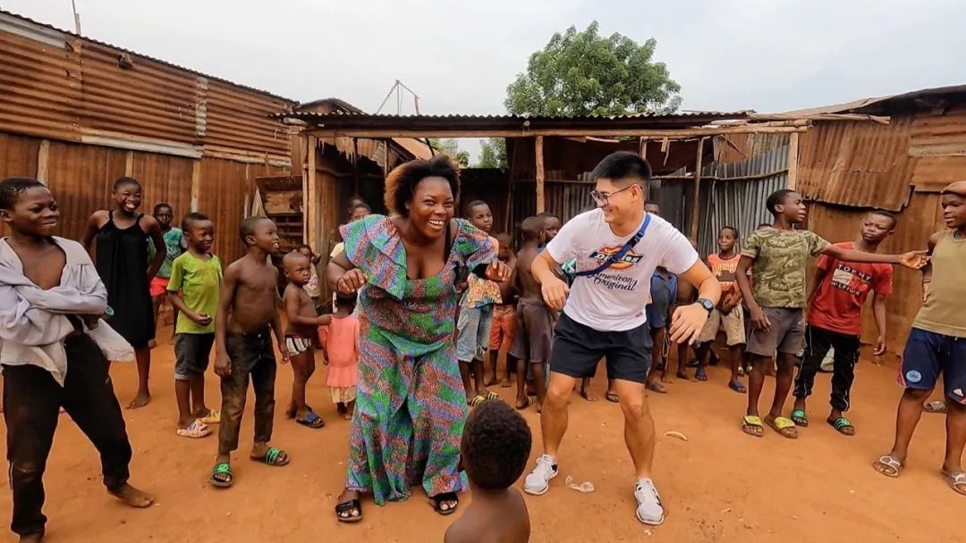 小钟在多哥的一个城中村,与当地村民一起跳舞疫情期间,因为大量空闲居家时间,他开始尝试拍摄非洲文化视频。四个月后,慢慢有了起色,他记录非洲巫术、酋长选举、卖鳄鱼的丛林市场、非洲版“华强北”……在各大平台的粉丝量加起来有将近350万,他也靠此攒下了人生第一个一百万。