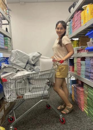 在新加坡的仓库2022年,她辞去工作,在商场租了一个摊位,售卖一些高品质的玩具,且每周能赚回1000多新币。