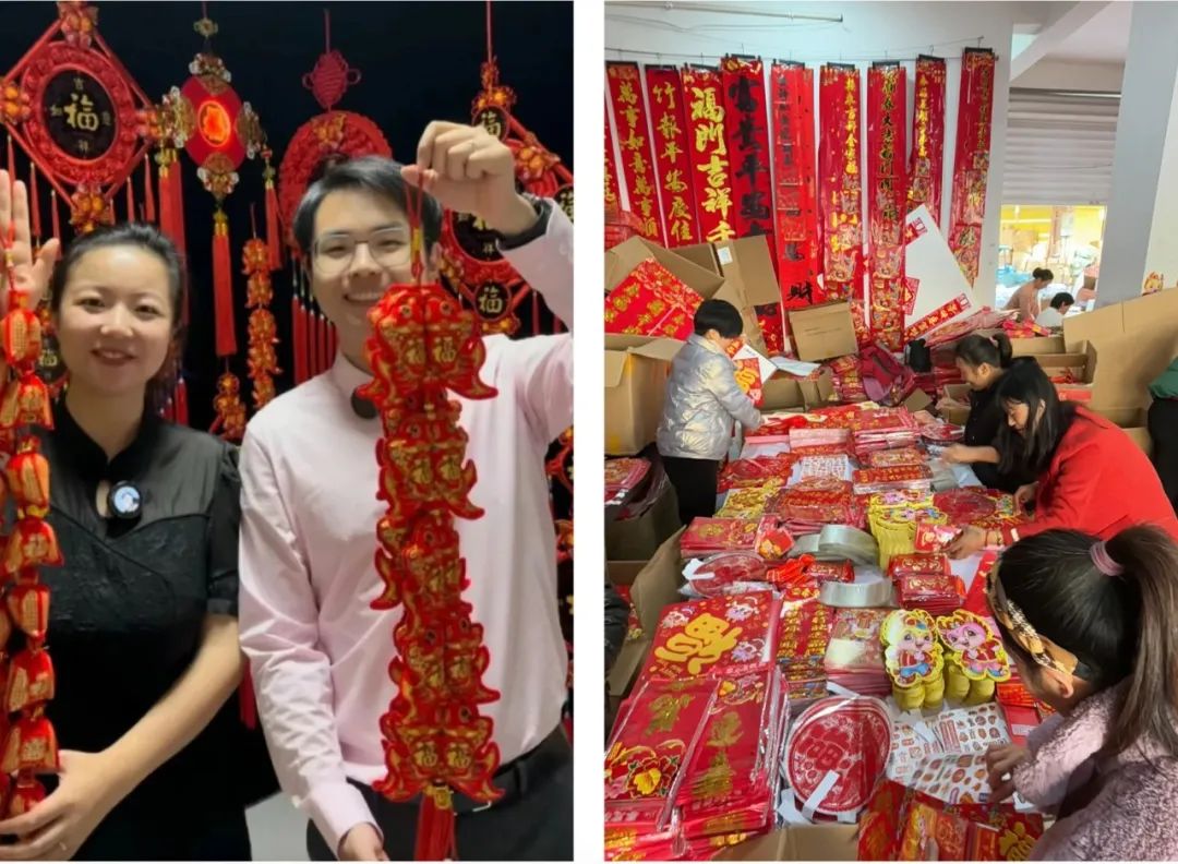 阿甜和老公通过直播卖年货最初,他们在朋友的工厂进了一批文具,练习拍品、运营等,到了10月,他们开始独立选货,主攻年货产品,如春联、窗花、福字等。