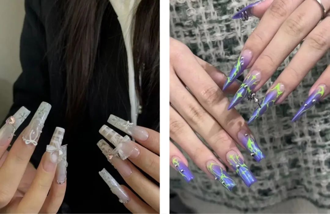 小鹿做的美甲隔壁的空宿舍,是小鹿的“美甲店”。这里没有人住,宿管阿姨允许学生在这里做想做的事。一张小鹿自己购入的宽敞双人桌,摆满了美甲设备:几台美甲灯、打光灯,各类甲油胶、甲片、水钻、搓条、打磨机……