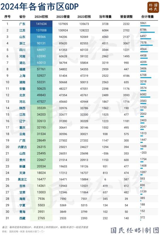 总体来看,粤苏鲁浙位次仍旧保持不变,广东率先迈过14万亿大关,连续36年蝉联中国第一。