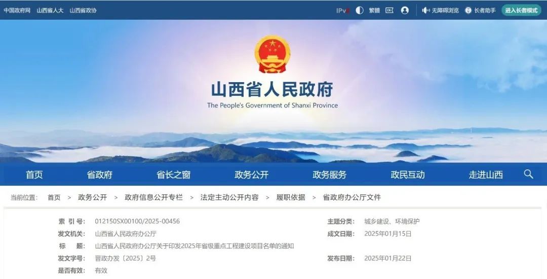 山西省人民政府办公厅印发2025年省级重点工程建设项目名单,包括611个省级重点工程项目。其中,产业转型类项目277项,能源革命类项目65项,科教人才类项目57项,基础设施类项目121项,社会民生类项目91项。