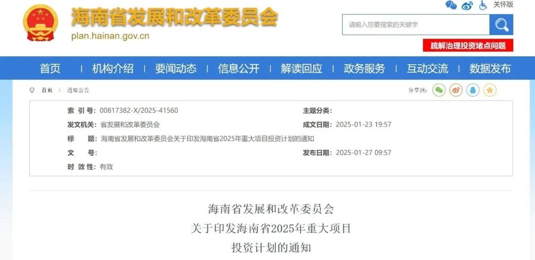 海南省发展改革委公布《海南省2025年重大项目投资计划》。2025年安排省重大正式项目554个,总投资8540亿元,年度计划投资1647亿元。其中,竣工项目121个、续建项目274个、新开工项目159个。此外,安排省级145个预备项目,总投资2485亿元。