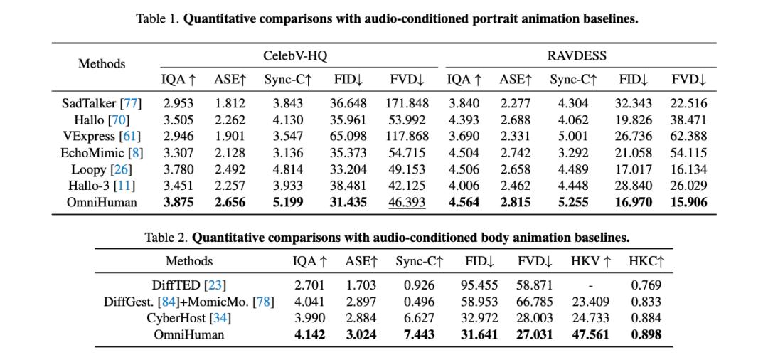 据技术报告,OmniHuman,面向端到端人像驱动任务中高质量数据稀缺的问题,采用了一种 Omni-Conditions Training 的混合多模态训练策略,并相应的设计了一个 OmniHuman 模型,通过这种混合多模态训练的设计,可以将多种模态的数据一起加入模型进行训练,从而大幅度的增加了人像驱动模型的可训练数据,使得模型可以从大规模数据中受益,对各种类似的输入形式有了比较好的支持。