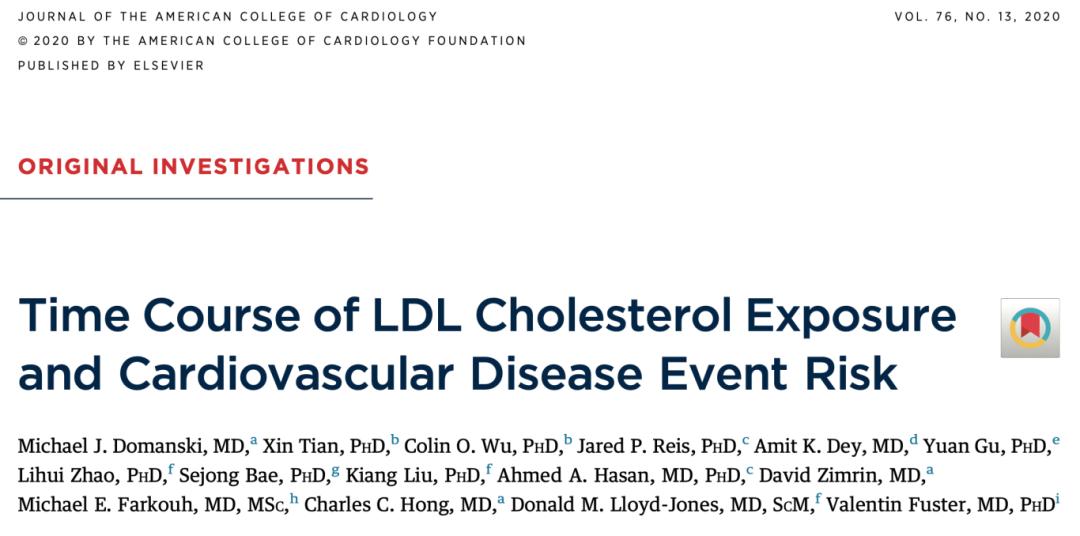 ②Domanski M J, Tian X, Wu C O, et al. Time course of LDL cholesterol exposure and cardiovascular disease event risk[J]. Journal of the American College of Cardiology, 2020, 76(13): 1507-1516.