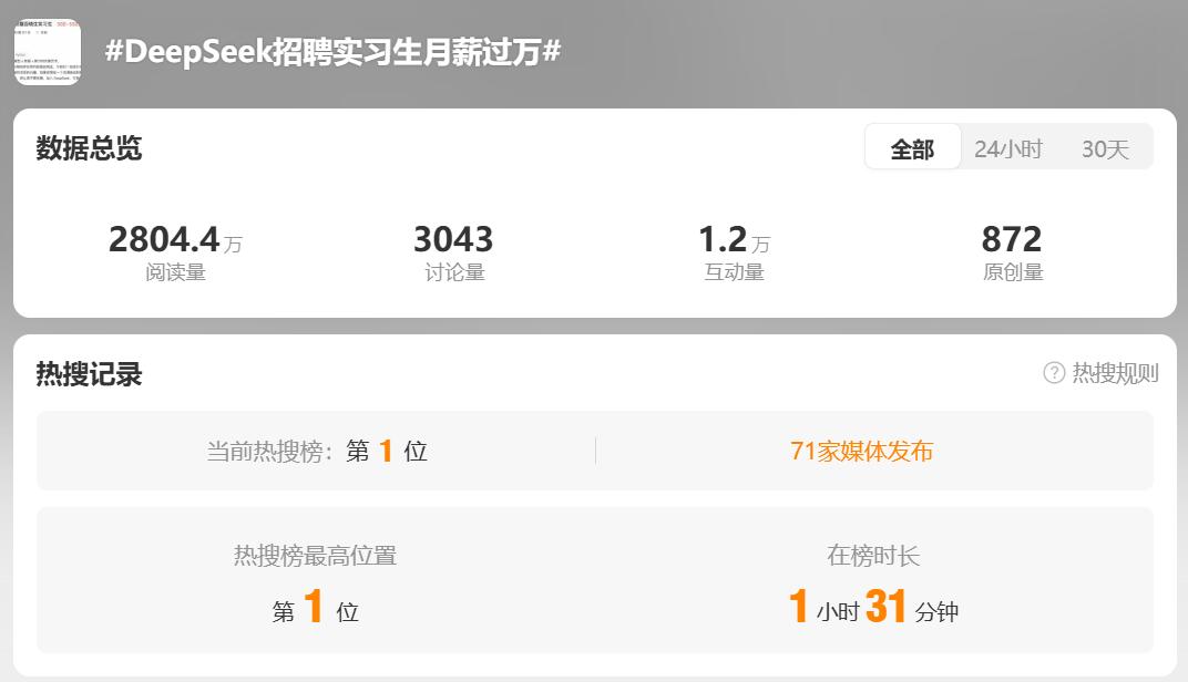DeepSeek百万年薪聘请AI人才实习生日薪最高1千元
