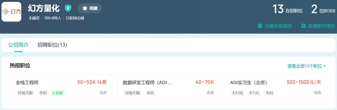 某招聘平台显示,DeepSeek的母公司幻方量化,发布了多个岗位的招聘信息,涵盖深度学习研究员、核心系统研发工程师及数据研发工程师等,工作城市是北京或杭州。