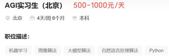 除正式员工外,该公司也正在招聘实习生。其中,AGI实习生的工资为500元至1000元/天。