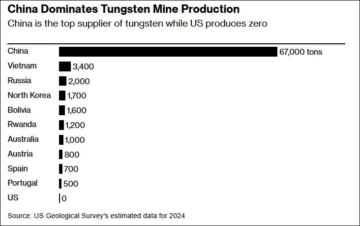 彭博社指出,中国的钨产量占到全球钨产量的80%左右,因此中方的出口管制措施将迫使美国及其盟友寻找替代的供应渠道。布莱克的Almonty Industries正在将注册地从加拿大转移到美国,该公司的股价已在过去两天里飙升41%。