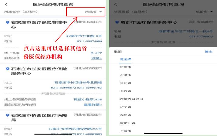 若需要查询省外医保经办机构联系方式,可通过“国家医保局”微信公众号--“微服务”--“国家异地就医备案”--“医保经办机构查询”模块,或者“国家医保服务平台”APP--“异地备案”--“医保经办机构查询”模块,获取全国各地医保部门联系方式。