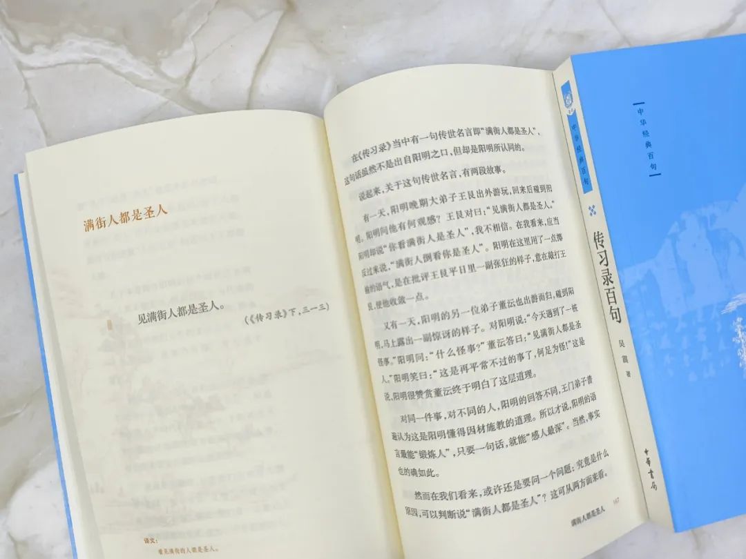 阐释解析启人心智。回归本原,从原典出发,有原文,有译文,更重要的是还有精彩独到、贯通融会的阐释解析,让读者在简明通俗的文字中感知阳明心学的高明智慧。即如“个个人心有仲尼”一条,阳明是想告诉我们,每个人都有成为“圣人”的内在依据及其潜在可能,都有可能成就“人伦之至”的道德主义理想人格。吴震老师告诉我们,今人虽距阳明的时代、孔子的时代比较久远,但并不妨碍以他们为代表的思想精神和理想人格激励和引导我们人生的未来走向。