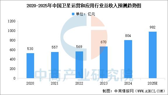 在政策支持、地理信息产业快速发展、技术创新与应用拓展的推动下,中国卫星运营和应用行业按收入计的市场规模持续增长。中商产业研究院发布的《2025-2030年中国商业航天行业深度分析及发展前景研究预测报告》显示,2024年中国卫星运营和应用行业总收入达804亿元,近五年年均复合增长率为11%。中商产业研究院分析师预测,2025年中国卫星运营和应用行业总收入将达到982亿元。