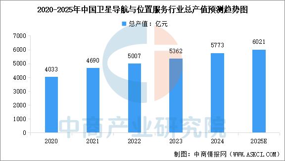 当前北斗卫星导航系统对我国经济社会发展的辐射带动作用日益显现,应用深度广度持续拓展,我国卫星导航与位置服务产业规模保持稳定增长态势。根据《2025-2030年中国卫星导航行业发展趋势及投资风险预测报告》,2023年我国卫星导航与位置服务产业总体产值达到5362亿元,同比增长7.09%,2024年我国卫星导航与位置服务行业总产值约5773亿元。中商产业研究院分析师预测,2025年中国卫星导航与位置服务行业总产值将超6000亿元。